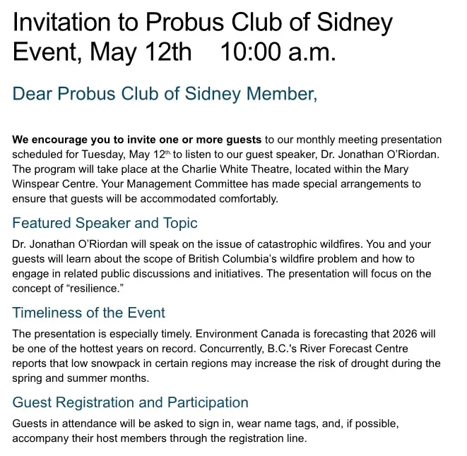At Probus Club of Sidney, we connect retired individuals through engaging speakers, events and interest groups. Join us to explore new interests and enjoy the fellowship of like-minded people. Become a member today and enrich your social life!